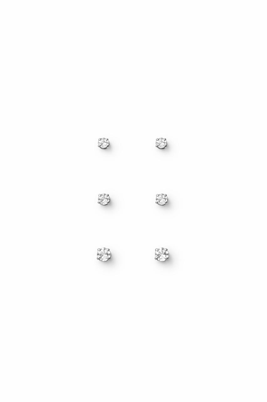 TRIO DE BRINCOS PONTO DE LUZ MINI EM PRATA 925 COM ZIRCÔNIA 2MM 2,5MM E 3MM